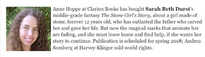 Very excited to announce the sale of my next middle-grade book, THE STONE GIRL'S STORY, to Anne Hoppe at Clarion Books / Houghton Mifflin Harcourt!!! Huzzah!!!
